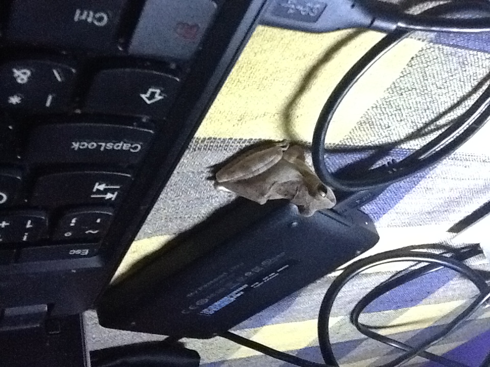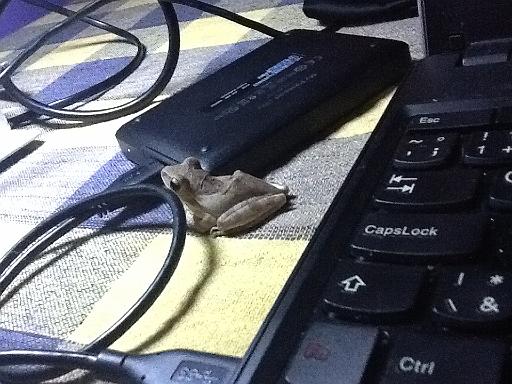 Žabička si na stole prohlíží disk...