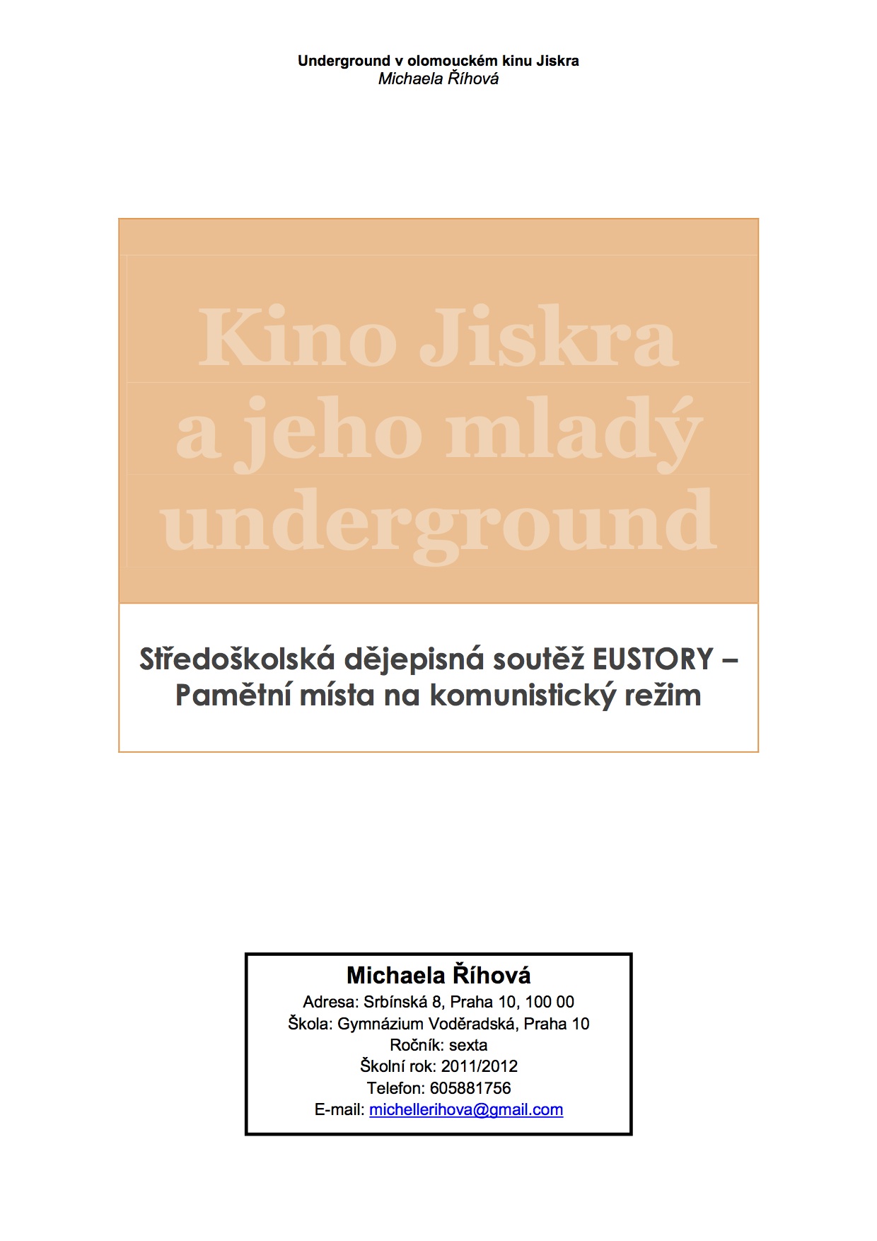 Středoškolská dějepisná soutěž EUSTORYPamětní místa na komunistický režim