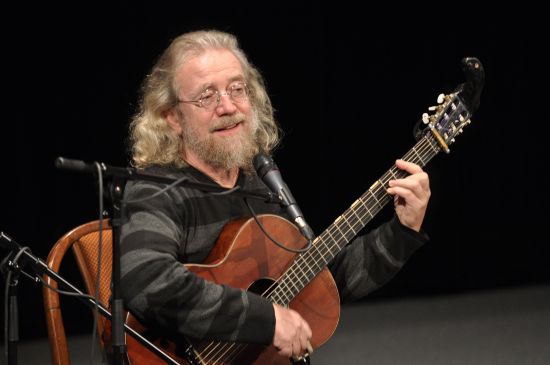 Hodinu po vernisáži začínal v kinosále koncert a besední setkání s Jaroslavem Hutkou. Folkař, jehož písně před dvaceti lety zpívala celá demonstrující Letná, přijel jen sám se svou kytarou.