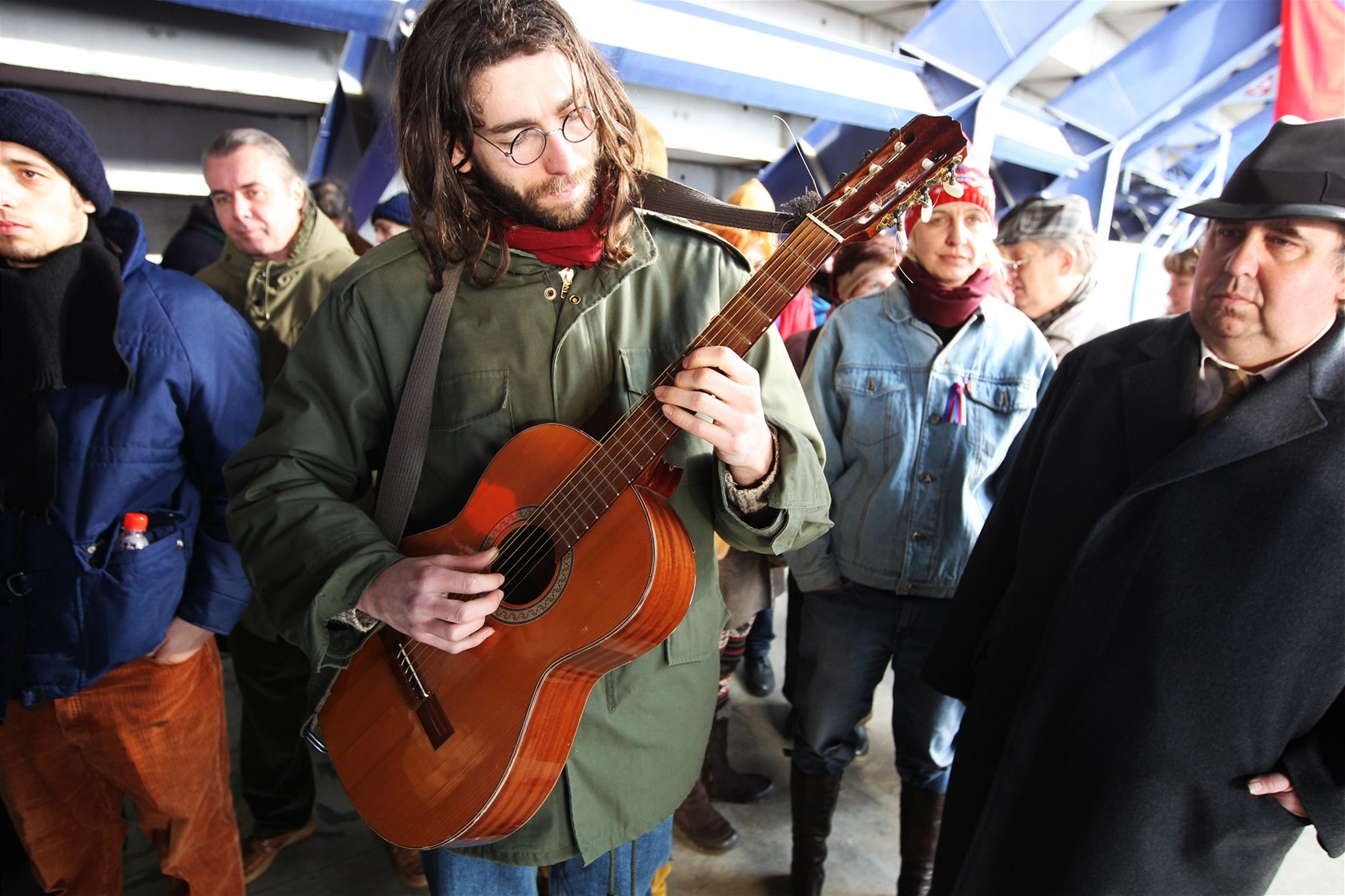Jaroslav Hutka, který je v Českém století spíš jen okrajovou figurou, v listopadu 1989 na letenskou demonstraci přijel rovnou z letiště, když se jako jeden z prvních emigrantů vrátil z holandského exilu.