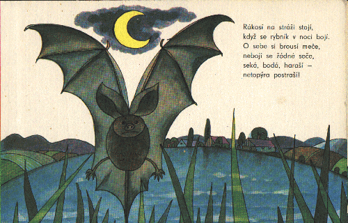 Rákosí na stráži stojí, Když se rybník v noci bojí. O sebe si brousí meče, nebojí se žádné seče, seká, bodá, haraší - Netopýra postraší!