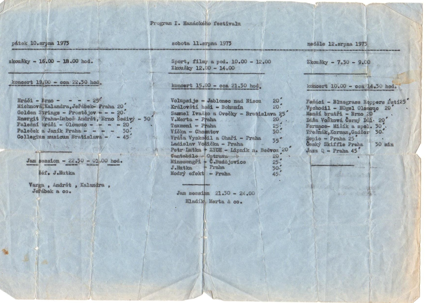 Připravovaný program festivalu v Náměšti na Hané